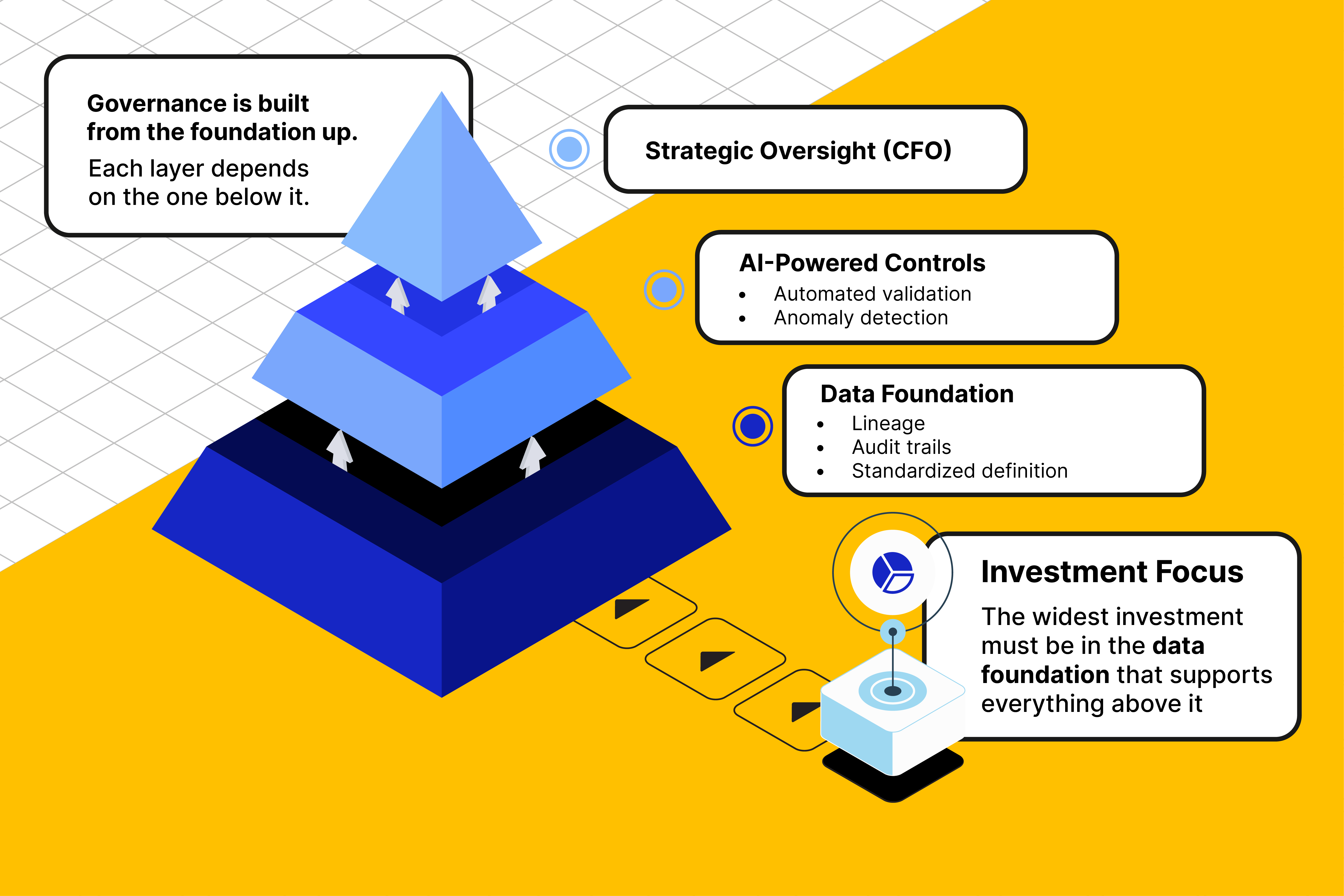 The autonomous CFO rejects this trade-off, recognizing that data isn't one priority among many; it's the foundation that enables every other objective: cost management, growth, compliance, and risk mitigation. Hence, they seek to address the data gap by laying the groundwork. Here are the key essentials for a strong data foundation.