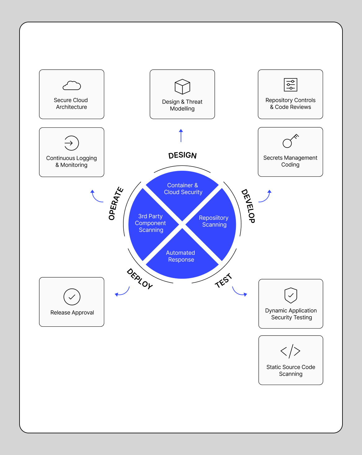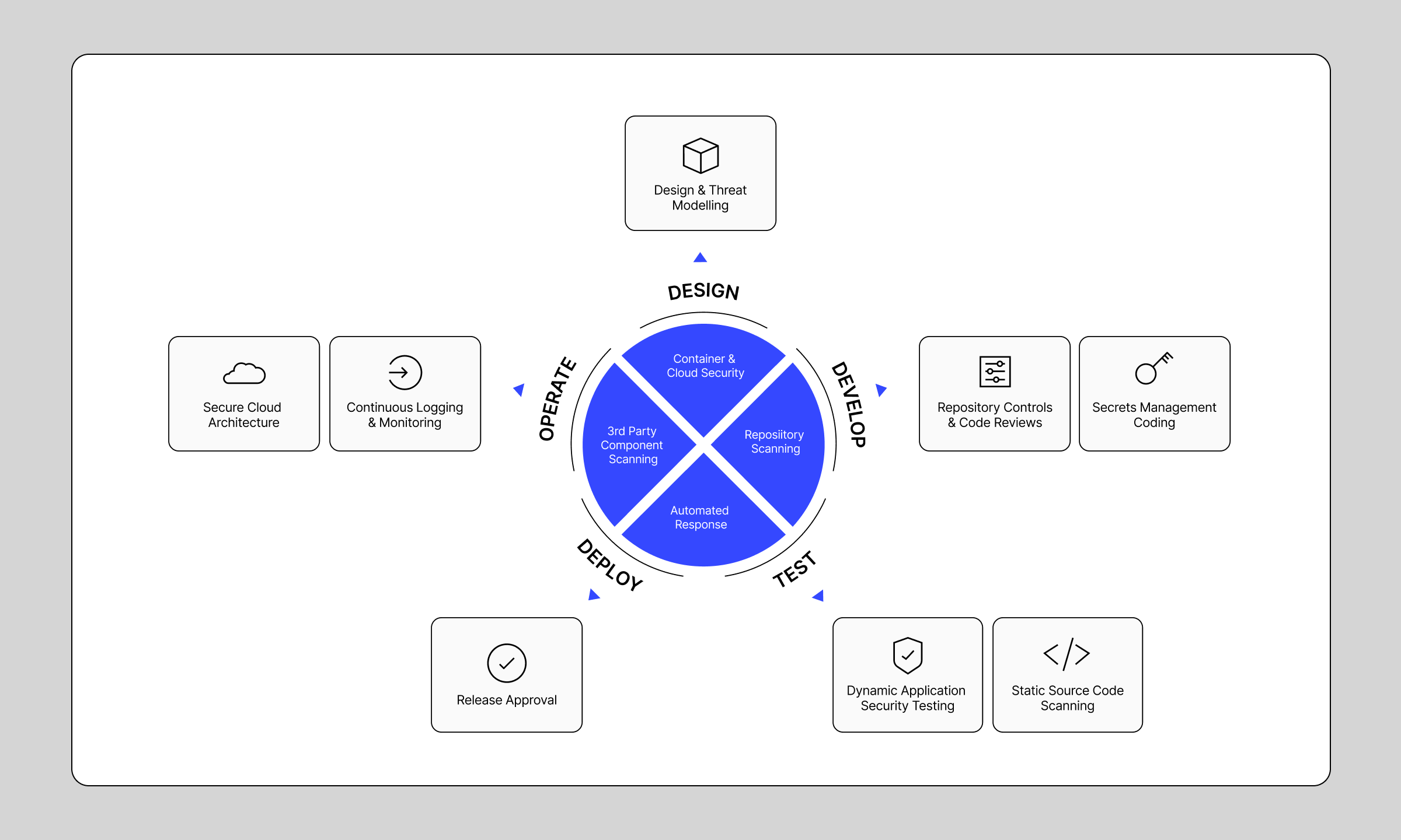 Bluecopa has a secure software development lifecycle (SDLC) that integrates security into all stages of the development process, from feature requests to production monitoring. We use tooling to trace a feature through the lifecycle and to automate security scanning and vulnerability tracking of systems, libraries, and code.